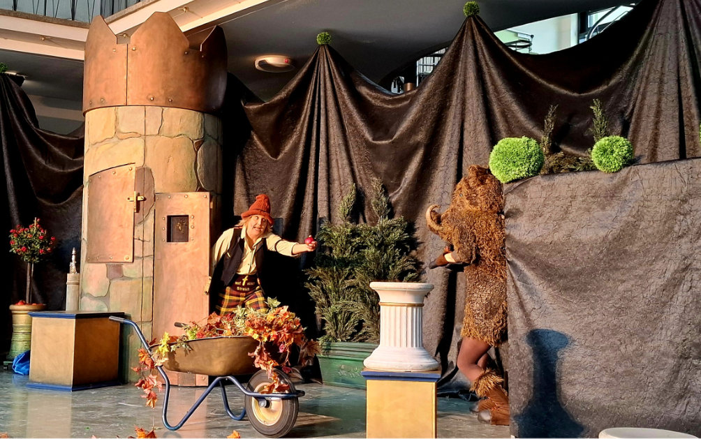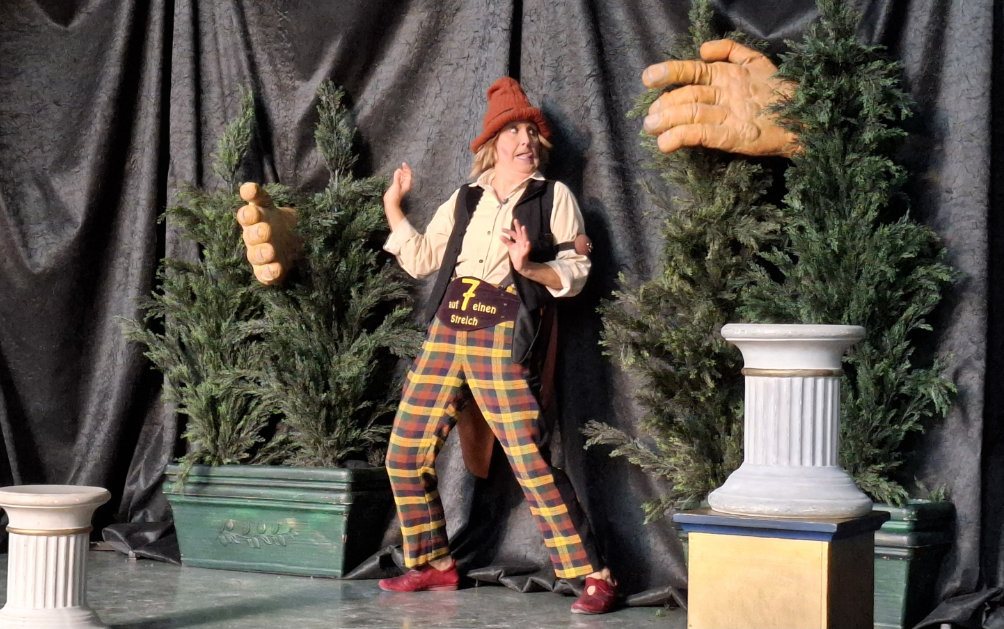 Zwischen Riesen, einem wilden Einhorn und einem gefährlichen Wildschwein musste sich der Held mit Schere und Maßband behaupten. Anschaulich wurden die Kraft von Witz und Verstand sowie der Glauben an sich selbst verdeutlicht.